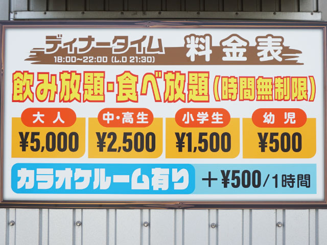 時間無制限 おひとり様 5,000円(税込)